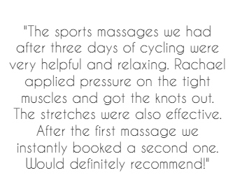 Sports / Deep-Tissue Massage – a combination of focused active and passive techniques and stretching to provide deeper, targeted release to muscles, tendons and ligaments, reducing fatigue and aiding recovery. Can also be adapted for pre and post event massage
