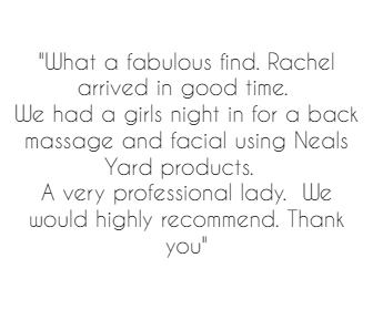 Beauty Facials – Using Neal’s Yard Products to cleanse, scrub and massage the face and neck. As a stand alone treatment or combine with any massage/treatment to create an ultimate self-care session. Extra charges apply